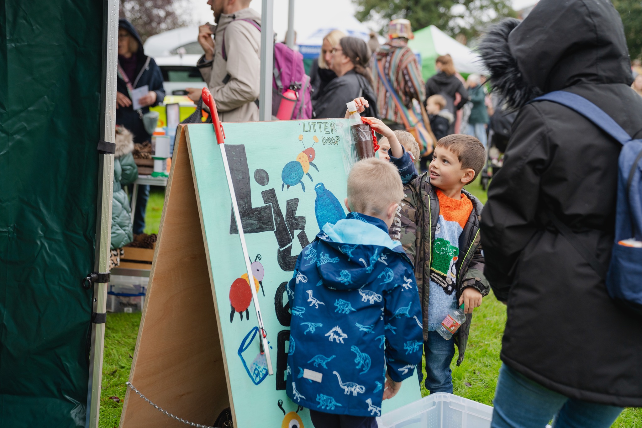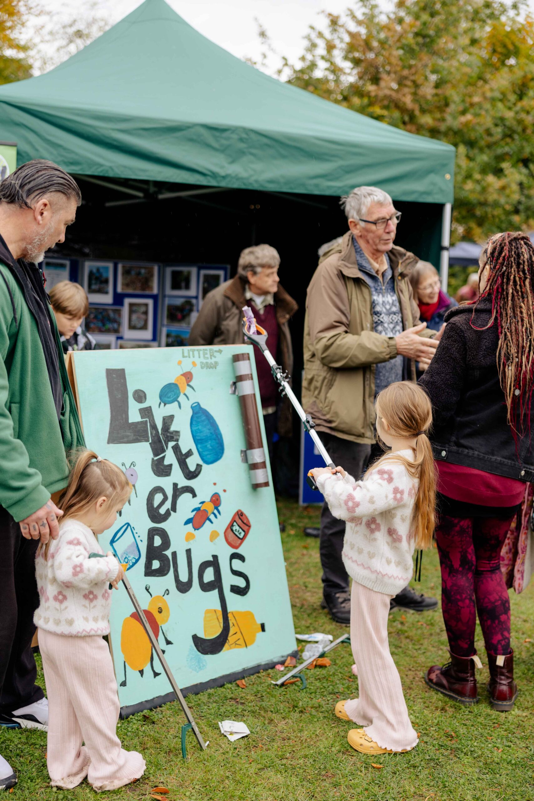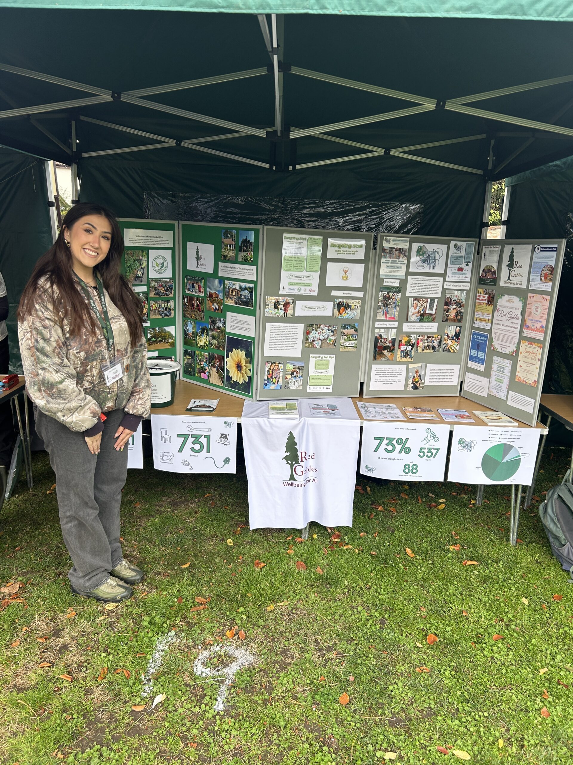 In October 2023, our Volunteers of Stowmarket team got involved by running the refreshments cafe with cakes kindly donated by the 1936 Regal Café, which included delicious vegan and gluten free options. Then in October 2025 we ran an outdoor stall, whilst discussing what goes on at Red Gables and presenting our two wooden frame games ‘Litter bug’ which teaches all ages how to use a litter pick and the ‘Pollin-8’ game. Our neighbouring stalls the Stowmarket Eco Future Group hosted their free welly swap, crafts and a ‘make a pond’ activity, whilst the Pickerel Project provided information on keeping the river Gipping clean and tidy.