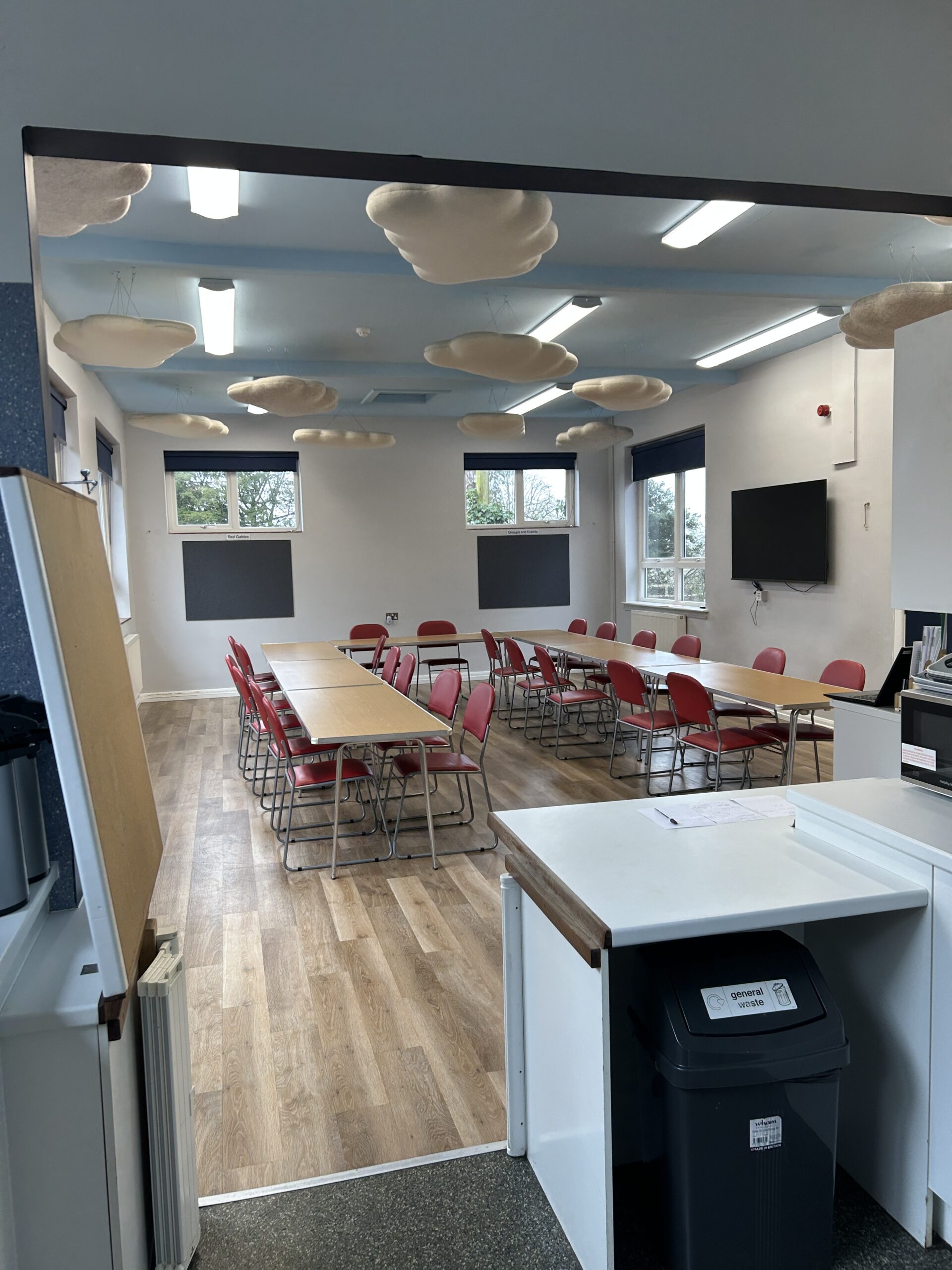 Located in the Redwoods building, our kitchen and hall offer a welcoming communal space available to rent. As our biggest communal space to offer, it is ideal for hosting a wide range of events and gatherings. Whether it’s a special celebration or a group meeting, our versatile facilities provide the perfect setting to make your occasion memorable.